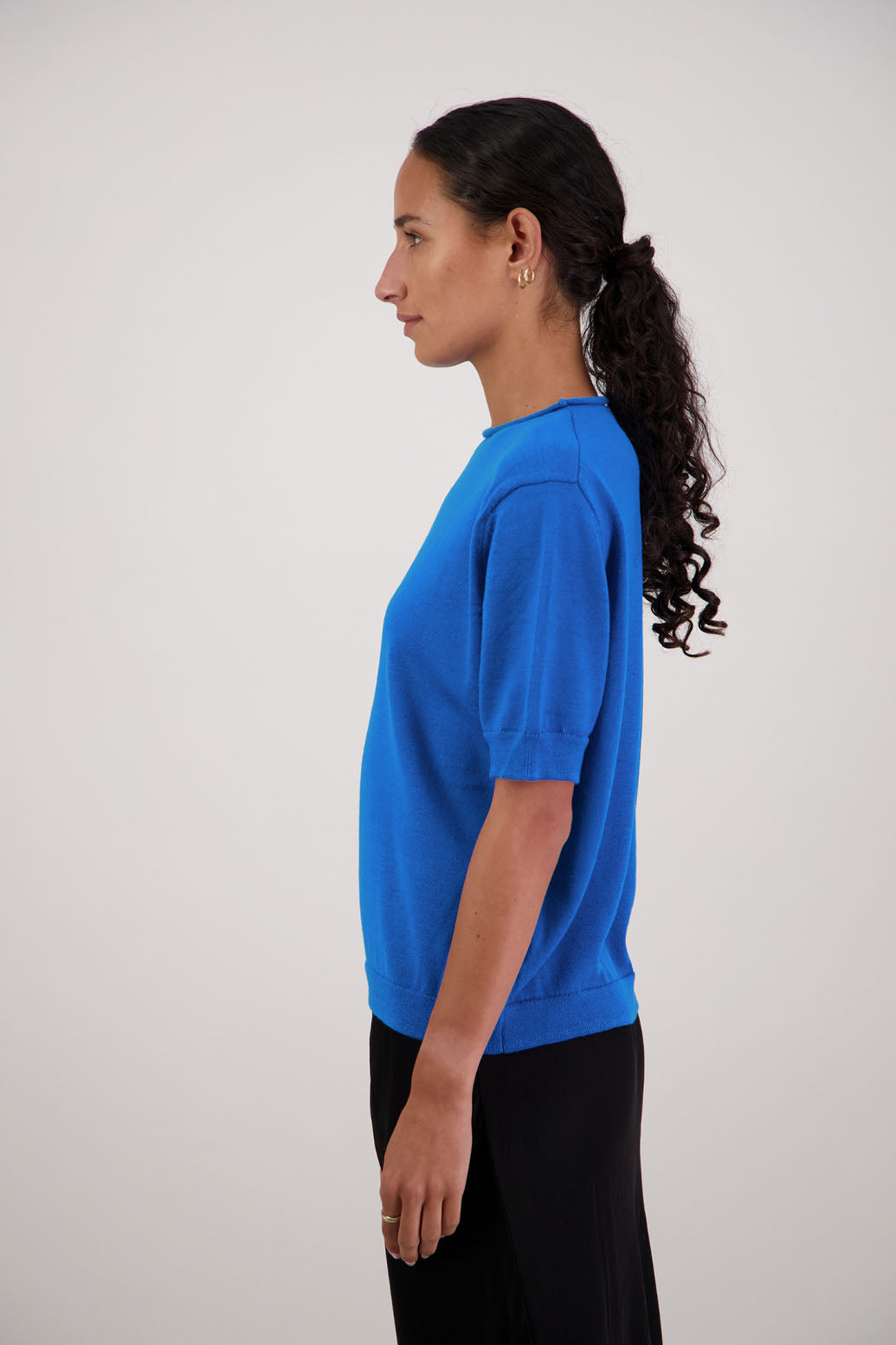 Crafted from 100% wool, the Frieda Top is an elevated take on the classic T-shirt silhouette. Designed with a high neckline, short sleeves and a semi-fitted shape, it offers natural warmth with a clean, modern finish. A versatile essential that layers effortlessly or stands alone with understated polish.