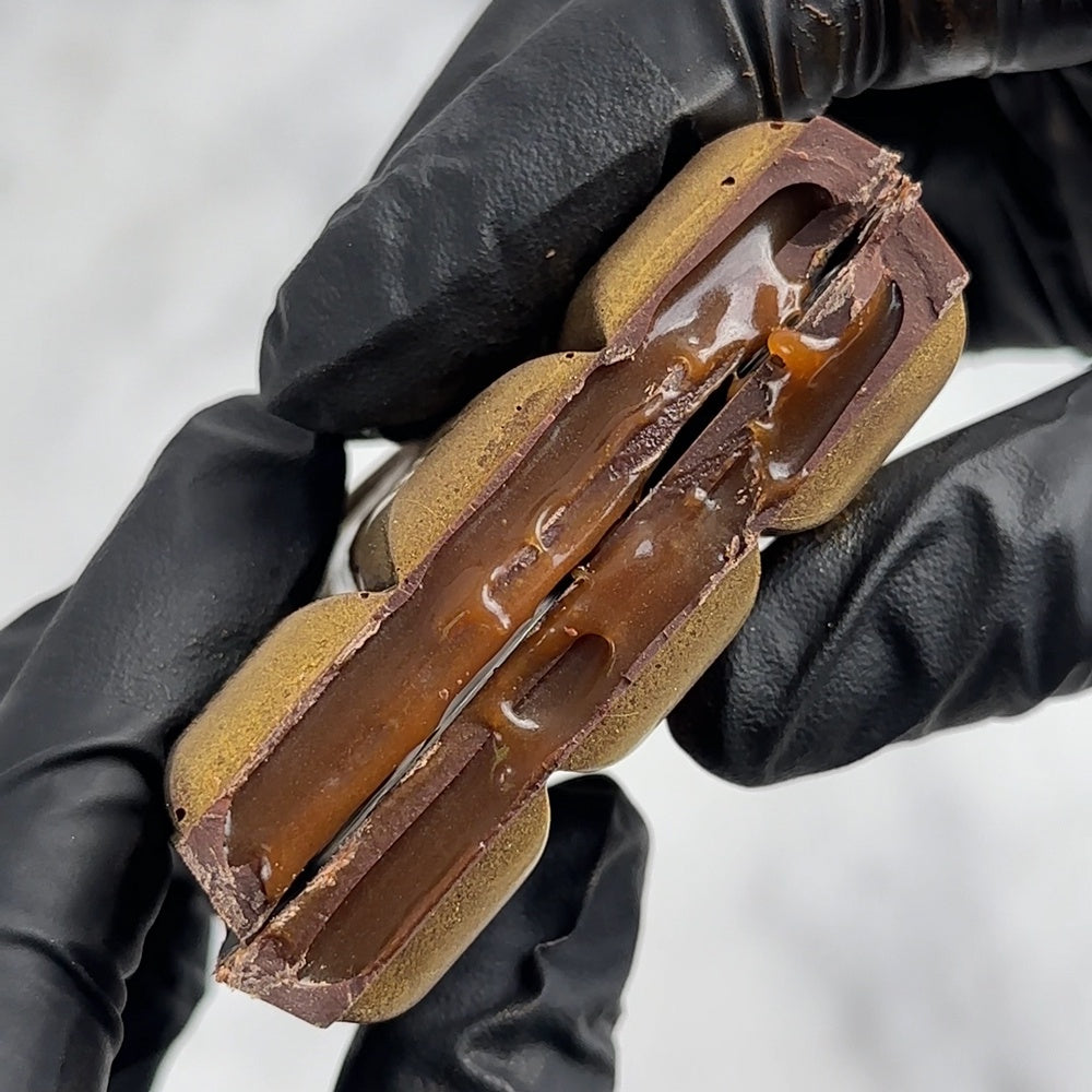 Our ooey gooey salted caramel chocolate bar is here! A luscious blend of bittersweet dark chocolate and sweet, salty caramel. Crafted with a 55% couverture dark chocolate shell, generously filled with rich, buttery caramel. Our largest bar yet, ready for you to indulge!