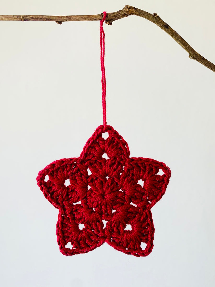 Gorgeous hand crocheted Christmas star decorations. Made from 100% cotton, they are a sweet little piece to pop on the tree, add to a gift or grab a few and create a mini garland!