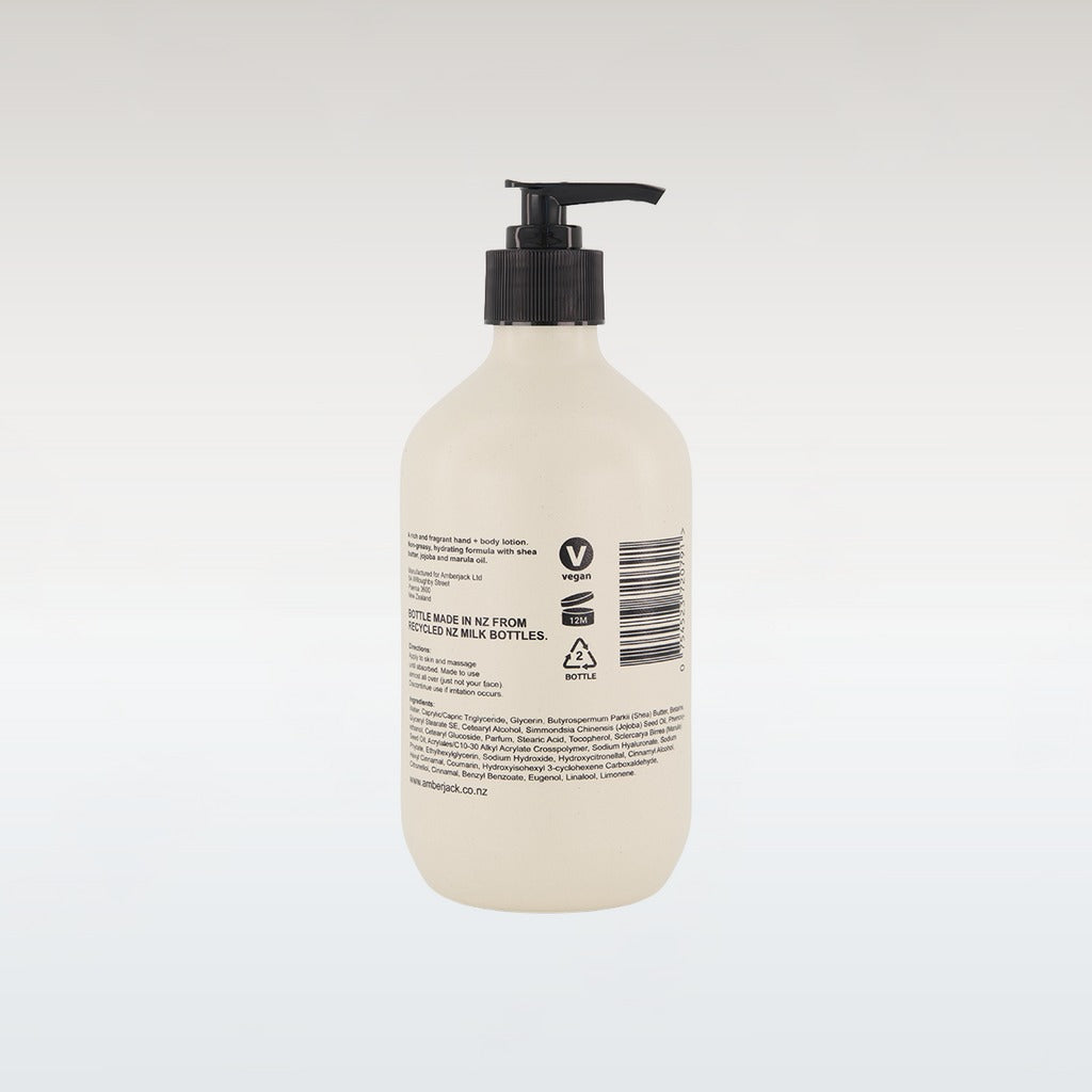 We’ve made a fancy lotion for hands and bodies that's lightweight and non-greasy. It's got marula oil, shea butter, jojoba and vitamin e to hydrate and nourish all over. Fragrant but not overpowering. Your skin's new best friend. Perfect to layer under your favourite perfume.
